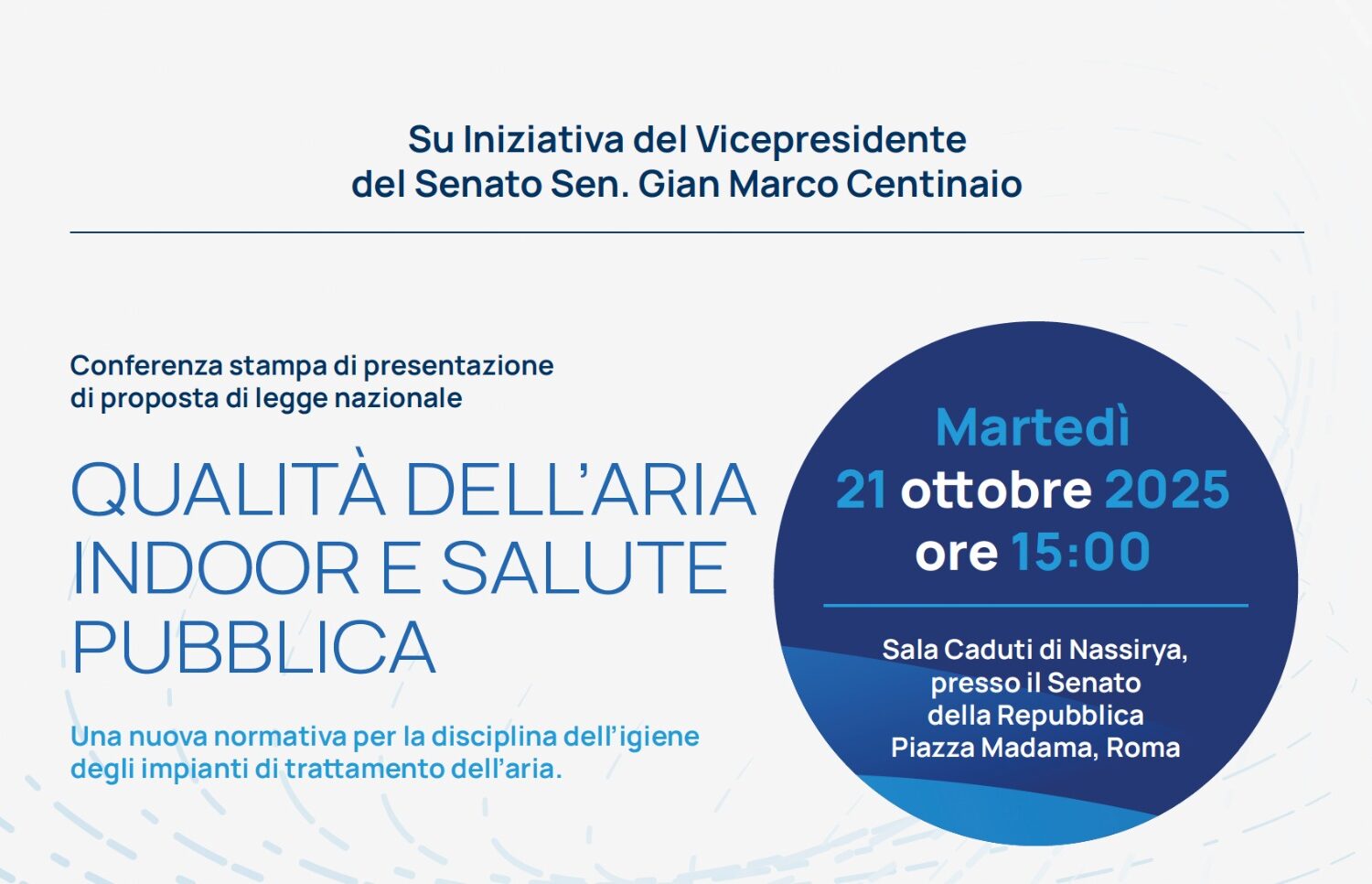 Su iniziativa del Vicepresidente del Senato, Gian Marco Centinaio, sarà presentata in conferenza stampa una proposta di legge nazionale destinata a introdurre un nuovo quadro normativo per la gestione e il controllo degli impianti di trattamento dell’aria.