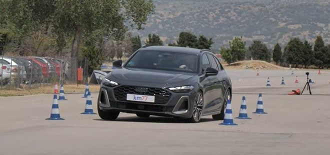 specifica prova di slalom tra i birilli per verificarne il comportamento. Quindi, il risultato? La prova è riassunta nel video realizzato da KM77 che proponiamo dove si può vedere in azione la nuova Audi A5 Avant che in questa specifica prova era nella versione S line TDI Quattro S tronic 150 kW (204 CV) con cerchi da 20 pollici e pneumatici Goodyear Eagle F1 Supersport 245/35 R20 98Y. Inoltre, questo modello specifico è dotato di sospensioni adattive.