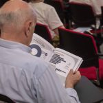 Un partecipante alla presentazione sfoglia il documento (Agenzia Fotogramma)