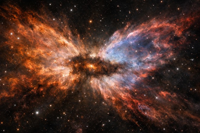 Nella Butterfly Nebula, conosciuta anche come NGC 6302, il telescopio spaziale James Webb ha individuato anidride carbonica sia allo stato gassoso sia sotto forma di ghiaccio secco, qualcosa di chimicamente mai visto nelle stelle arrivate agli ultimi stadi della loro vita.