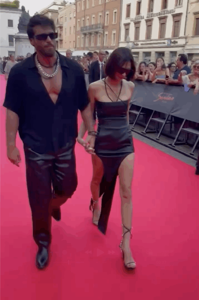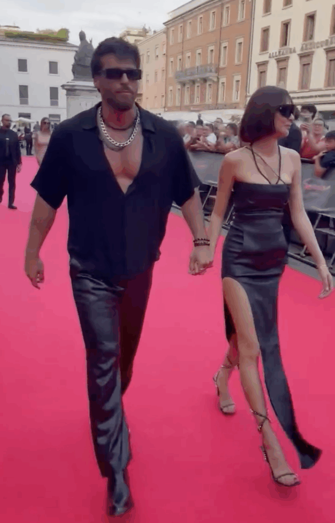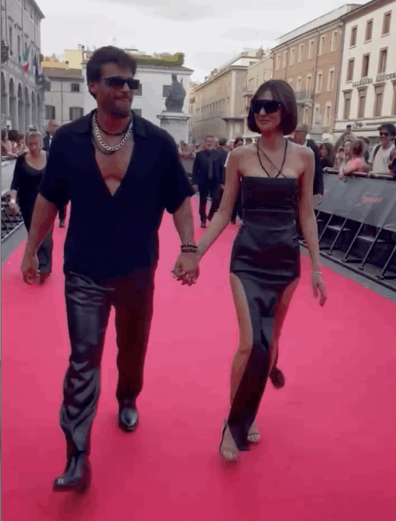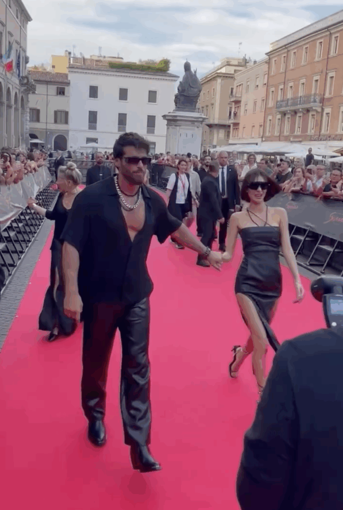Can e Sara fanno i piccioncini davanti agli obiettivi, non si perdono mai di vista. Indossano entrambi occhiali con lenti scure e sono in total black. Lui indossa pantaloni in raso e camicia a maniche corte sbottonata sul petto, mostrando i pettorali da urlo, lei un tubino nero alla caviglia con due vistosi spacchi laterali.