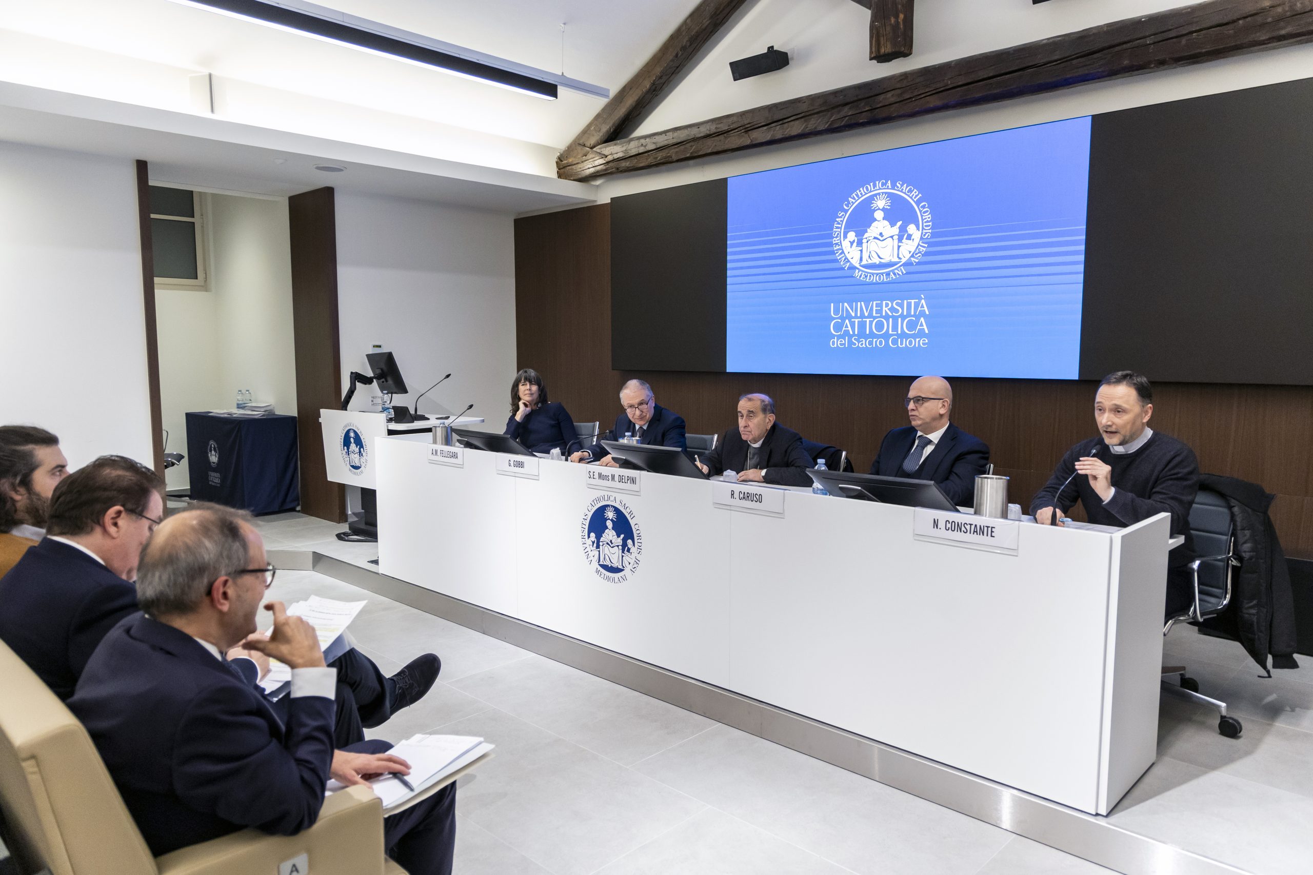 Presenti studenti, docenti – tra cui Antonella Occhino, preside della Facoltà di Economia -, il Moderator Curiae mons. Carlo Azzimonti ed economisti molto noti come Annamaria Tarantola, l’incontro è stato aperto dai saluti istituzionali della pro rettore vicario della “Cattolica”, Annamaria Fellegara, in rappresentanza del rettore, Elena Beccalli, che subito ha centrato il cuore della questione. «Occorre sostare – ha, infatti, detto – sulle parole “vie della pace” e “tempo della pace”, per comprendere cosa significhino nella vita personale e comunitaria. Ci sono giorni di apparente normalità con una vita assorbita dalla vita quotidiana finché cresce l’ingiustizia fino al punto di rottura. La pace non può essere costruita senza un cambiamento profondo del modo di intendere l’economia, capace di trasformare l’interesse individuale in vista del bene comune. La pace è frutto di scelte consapevoli per promuovere la dignità di tutti».