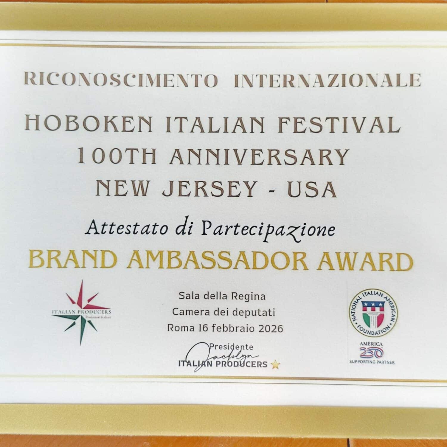 Tra i momenti più intensi, il conferimento del Brand Ambassador Made in Italy alla più grande comunità pugliese nel mondo: gli italo-americani del Nord America, custodi del più importante evento italiano del New Jersey, l’Hoboken Italian Festival the feast of Madonna dei Martiri, che nel 2026 celebra un traguardo storico: 100 anni di tradizione italiana oltreoceano.