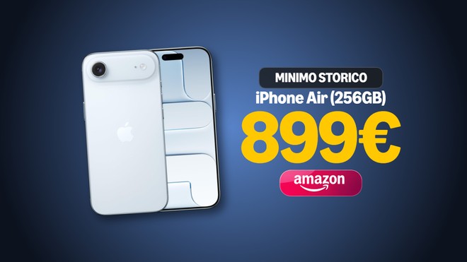 Febbraio inizia con una promo molto interessante. Lo sconto Amazon del 27% permette infatti di risparmiare 340 sull'acquisto di iPhone Air da 256GB e, quindi, di acquistare il sottilissimo smartphone a 899. Per il device con A19 Pro è il nuovo minimo storico, ed è possibile anche pagare in 5 rate, senza interessi.