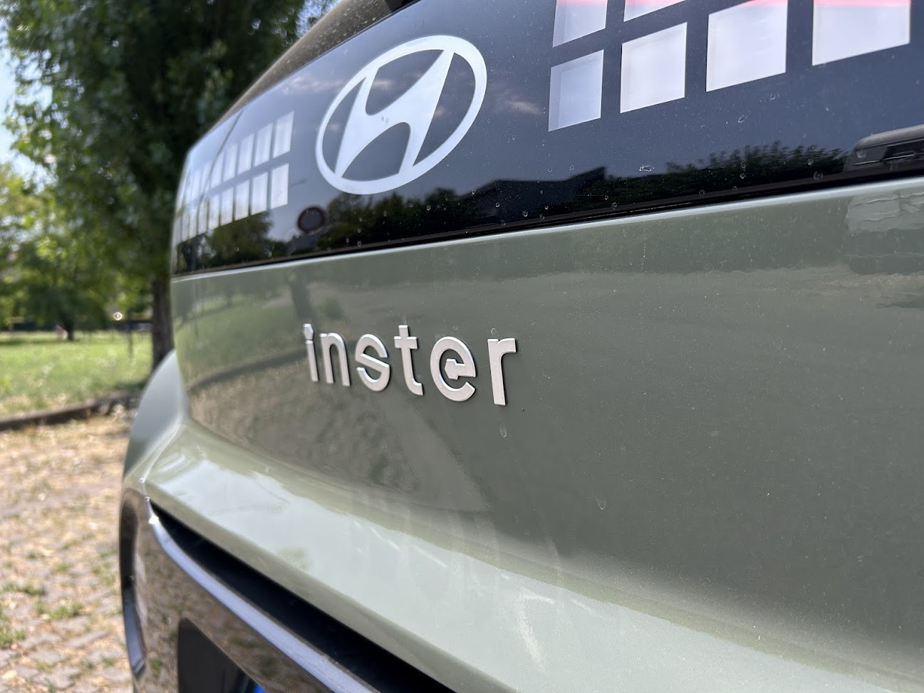 lettering "Inster" in rilievo, collocata sotto il logo Hyundai.