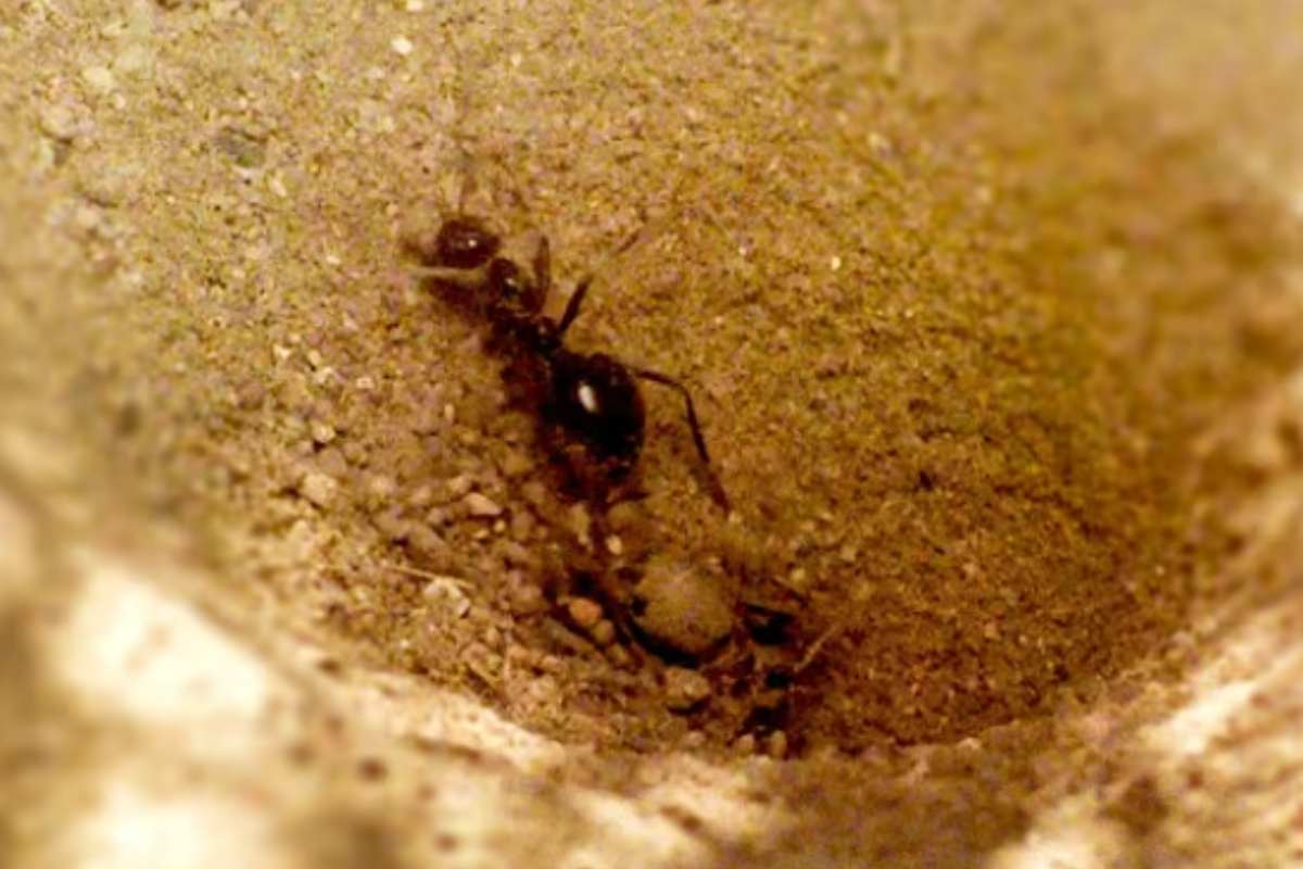 La Larva del Formicaleone, crea nella sabbia soffice, piccole trappole a imbuto per catturare formiche e altri insetti.