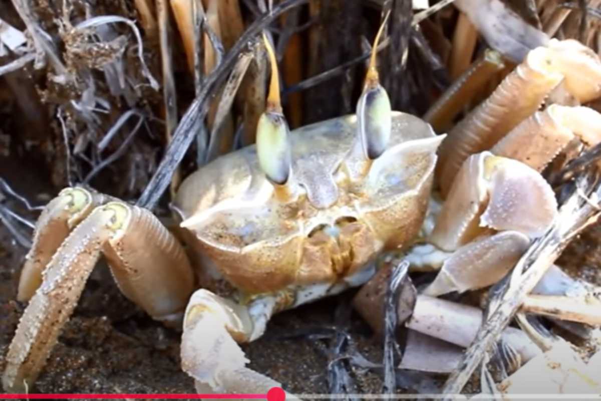 Il Granchio fantasma, vive in tane scavate vicino alle dune e corre via appena ti avvicini. Possiede zampe lunghe e chiare, un corpo squadrato di circa 8-10 cm e occhi sporgenti.