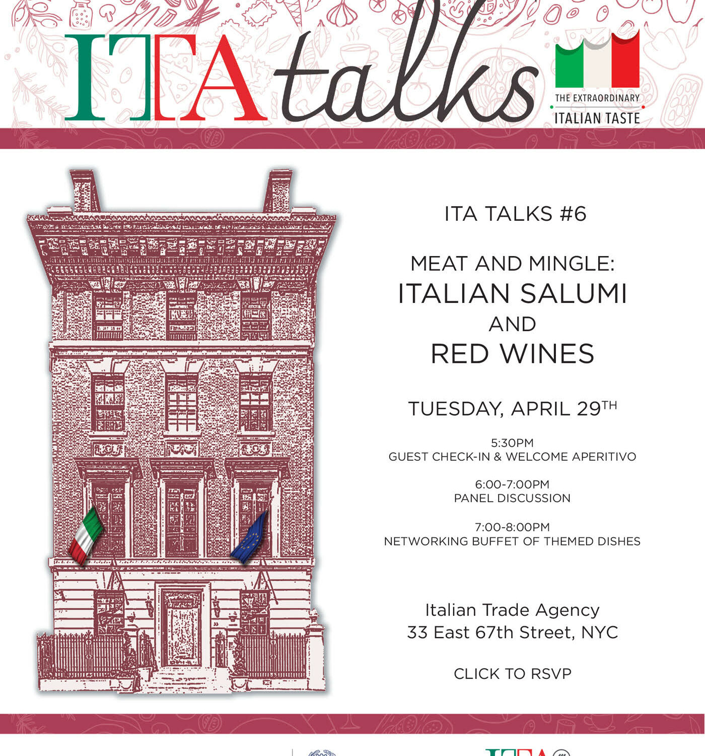 Martedì 29 aprile, la sede della Italian Trade Agency al 33 di East 67th Street a Manhattan ha ospitato la sesta edizione di “ITA Talks”, la serie di incontri organizzata per promuovere le eccellenze del Made in Italy tra gli operatori del settore. L’appuntamento, intitolato Meat and Mingle, era dedicato a due simboli della cultura gastronomica italiana: i salumi e il vino rosso. Una serata pensata per unire il racconto tecnico al piacere dell’assaggio, in un contesto di dialogo tra produttori, esperti e professionisti del food.
