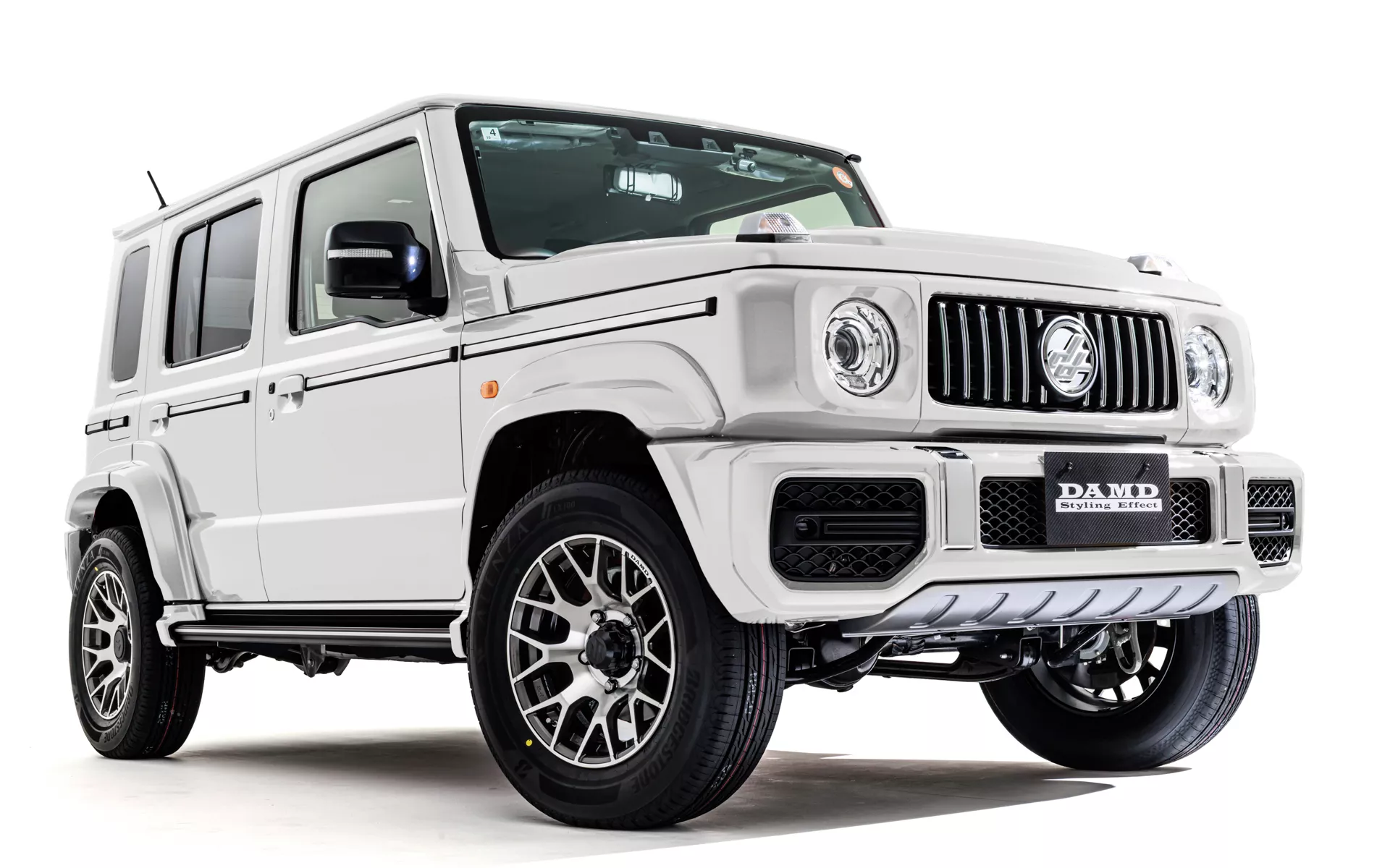 L'ultima versione del bodykit in stile Defender, soprannominata "Little D", è stata aggiornata per potersi adattare alla versione del Jimny a 5 porte ed è stata presentata con una colorazione verde scuro. Il kit aggiunge nuovi fari e indicatori di direzione nello stile del classico Defender, insieme a una griglia anteriore oscurata che sfoggia il familiare stemma ovale verde della casa automobilistica inglese. Per completare il look, DAMD ha realizzato una piastra paramotore speciale, nuovi paraurti anteriore e posteriore e parafanghi svasati. La Little D è inoltre dotata di paraspruzzi e può essere equipaggiata con cerchi dal nuovo design.[gallery ids="216470,216471"]