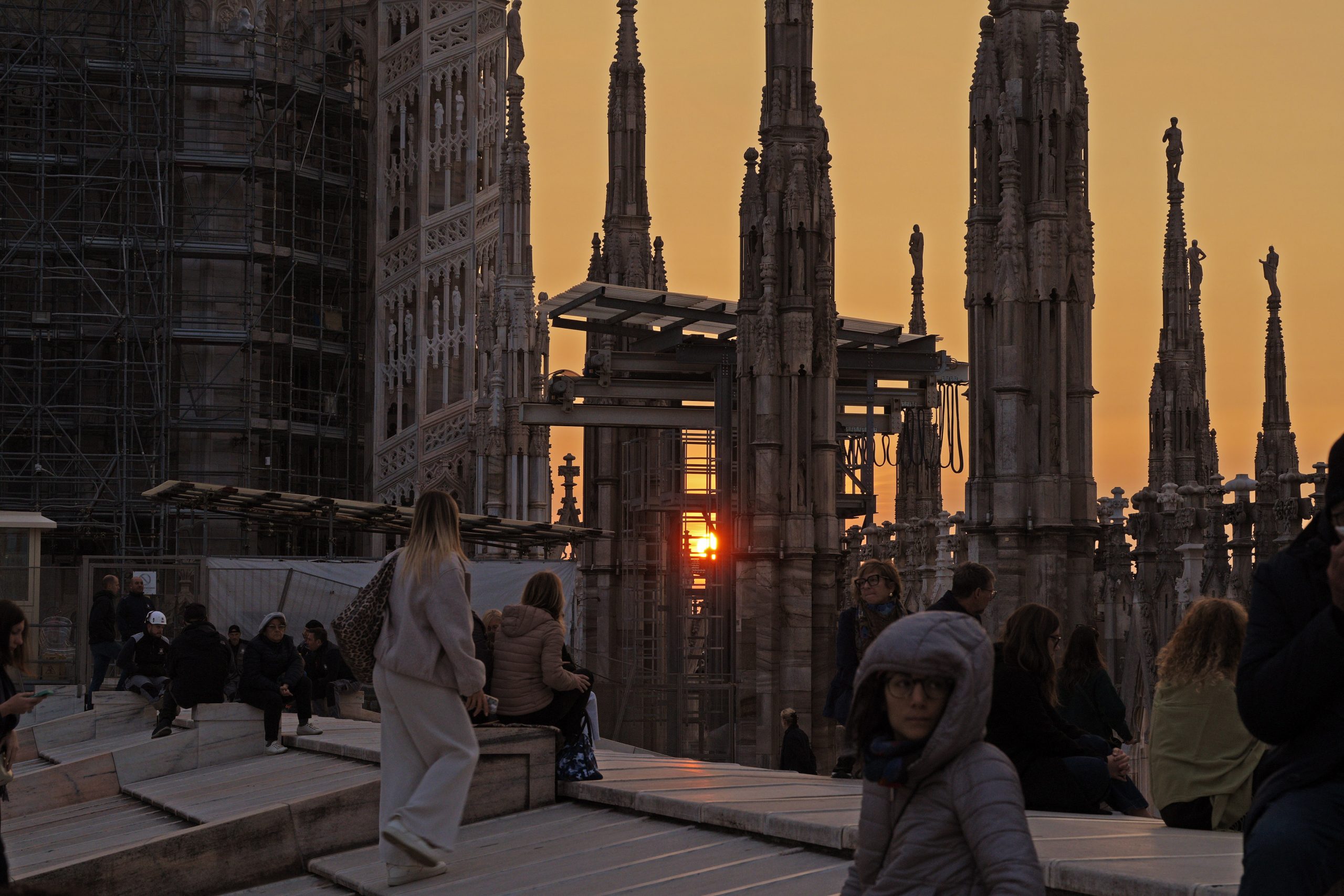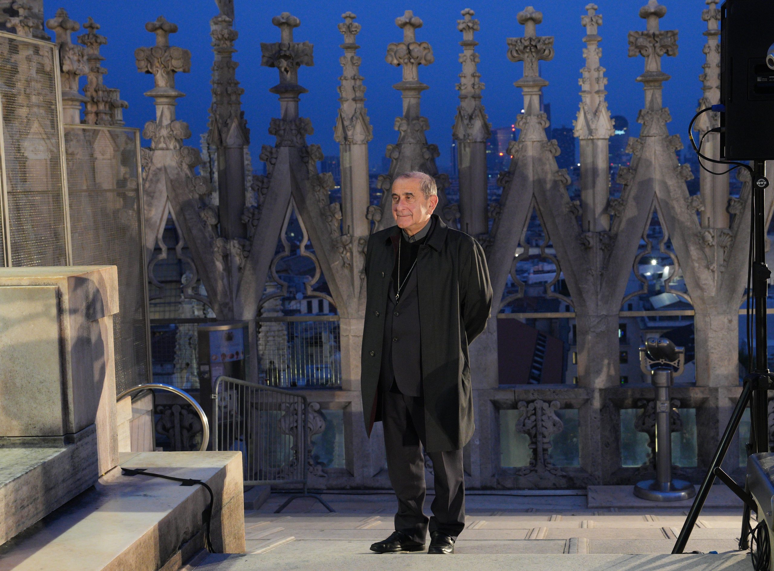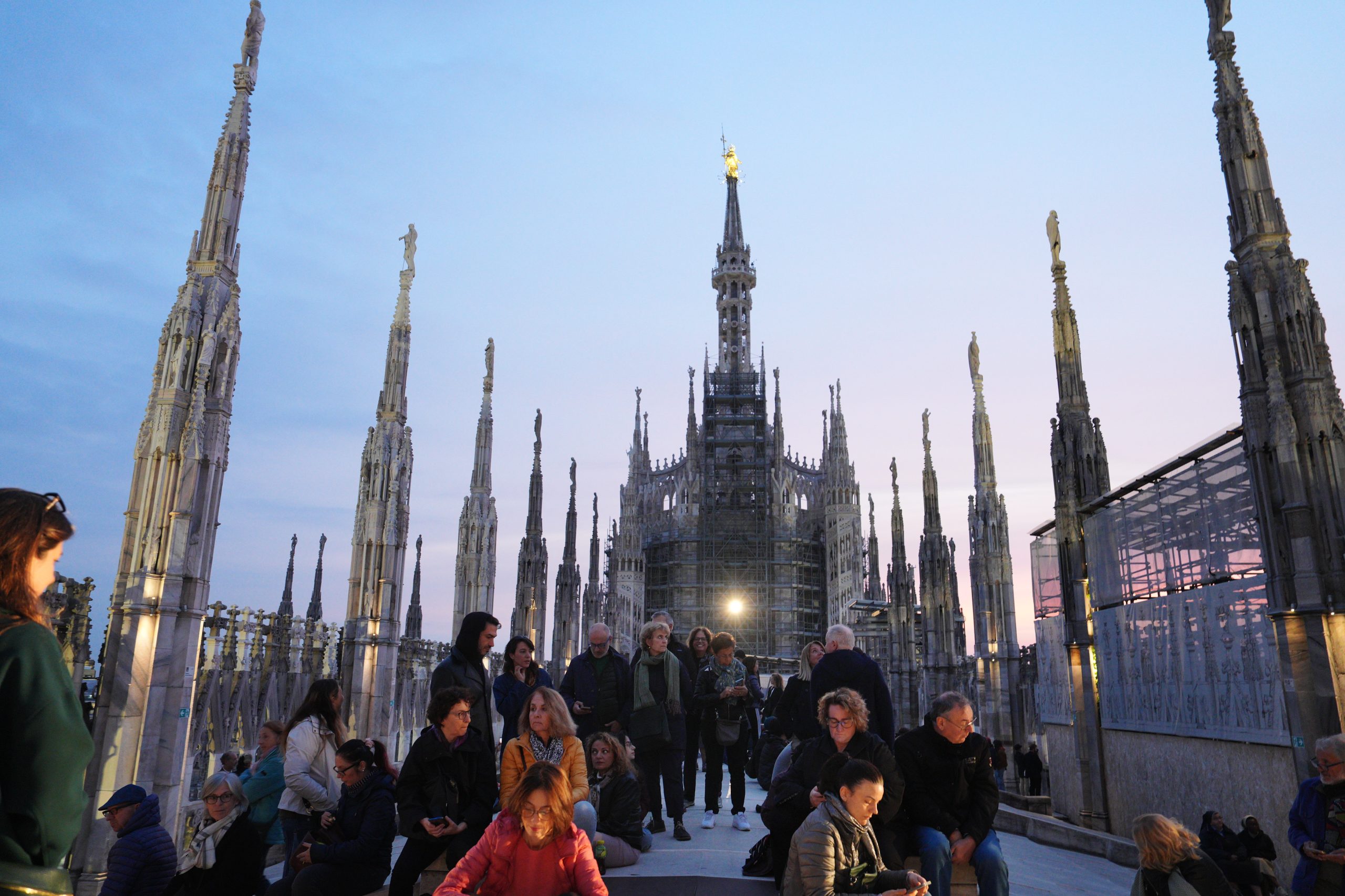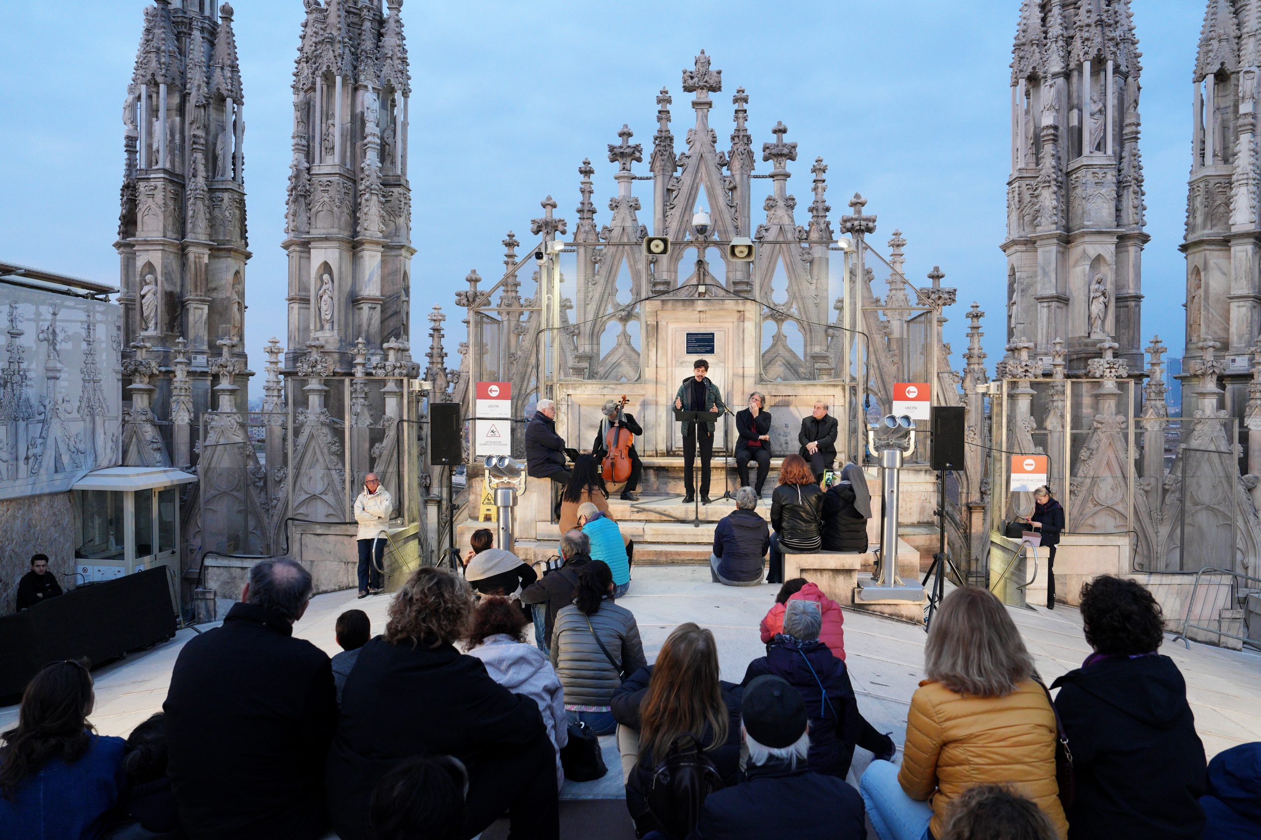 L’affacciarsi del giorno che è avere un nuovo volto, quello dell’aurora, la mitica dea greca e omerica Eos, dalle dita rosate. Salendo sulle Terrazze del Duomo, quasi toccando il cielo che si fa via via più chiaro, tra il buio che si dirada e lascia spazio all’azzurro dell’alba, sembra di vederle e di poterle toccare, le dita che dipingono di rosa l’orizzonte. Tanto che l’Arcivescovo – salito anche lui tra le guglie per vivere il momento magico del sorgere del sole – avvia la sua riflessione proprio dall’immagine di Eos-aurora. Richiamata anche da Luciano Manicardi, biblista e monaco della Comunità di Bose, in apertura dell’happening dal titolo «Viene l’aurora», al quale partecipano un centinaio di persone e che recupera l’appuntamento con cui il 23 marzo scorso avrebbe dovuto concludersi «Soul Festival di Spiritualità 2025», non tenutosi per il maltempo.