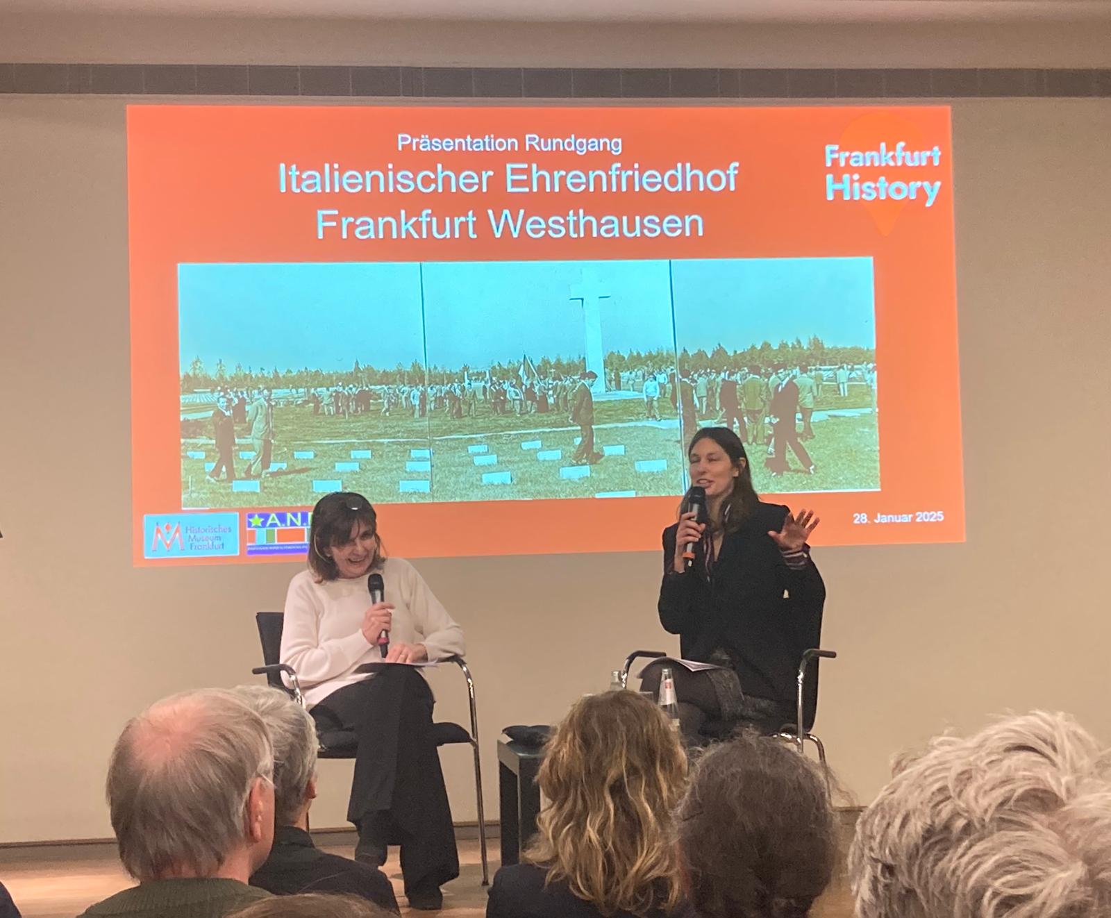 La guida virtuale al cimitero di Westhausen non sarebbe stata possibile senza la sensibilità oltre che la competenza professionale di Angela Jannelli, curatrice del museo storico di Francoforte. E occorre fare un passo indietro al novembre 2022 quando l’historisches Museum Frankfurt lanciò l’app Frankfurt History, divisa in tre aree tematiche, di cui una è Frankfurt und der NS. Così Angela Jannelli: “Quando abbiamo presentato al pubblico la app c’era Rosanna Maccarone, mi ha detto di essere dell’ANPI, e le ho chiesto se potevamo fare qualche cosa sul cimitero militare di Westhausen. Dopo due settimane mi ha invitata a incontrare il gruppo di lavoro in nuce al Club Voltaire lì è nato il progetto”.