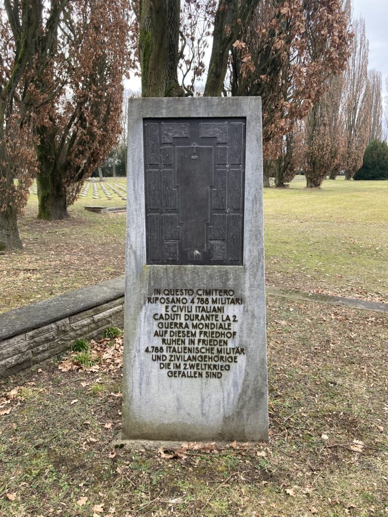 Bisogna andarci apposta al Cimitero militare italiano d’onore di Westhausen perché si trova nella periferia nord, nord-ovest di Francoforte, quartiere di Hausen, penultima stazione della linea 7 della metropolitana. È un grande cimitero immerso in un grande parco e la lapide introduce alla parte meridionale che dal 1958 è cimitero di guerra che ha raccolto le spoglie mortali di italiane e italiani, provenienti dalle regioni vicine. Oggi sono qualche decina meno di 4788 perché alcuni resti sono stati traslati in Italia ad opera e a spese dei familiari grazie a una legge di pochi anni fa. In Germania sono quattro i cimiteri di guerra per i 13.000 italiani, soldati e civili, morti sul suolo della Germania occidentale. Gli altri cimiteri sono ad Amburgo, a Berlino, a Monaco.