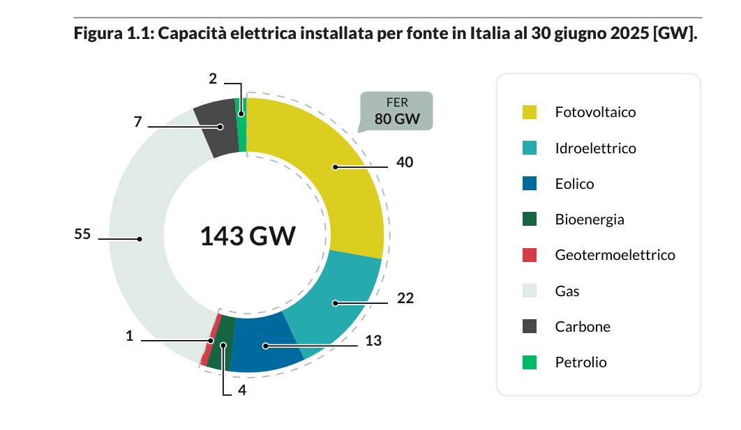 A fine giugno 2025 le FER (fonti energetiche rinnovabili) contano 80 GW di potenza in Italia, pari al 56% circa della capacità di produzione elettrica complessiva, e si confermano una delle tendenze principali nell’evoluzione del sistema elettrico.