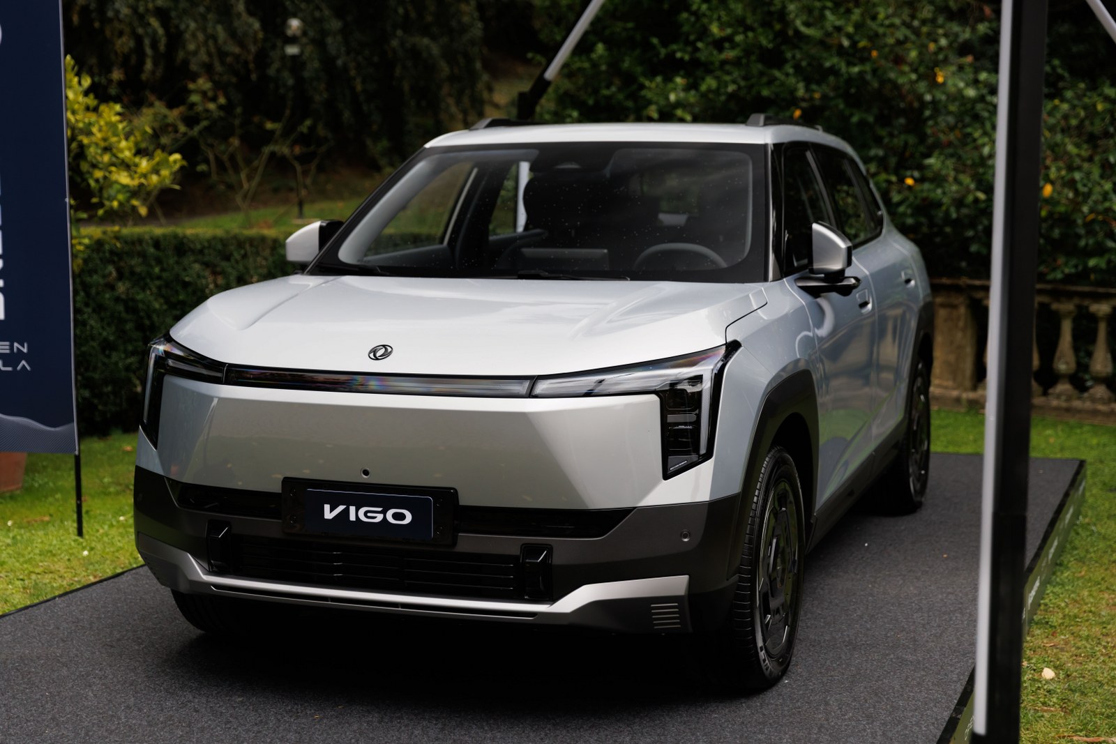 Si tratta di crossover elettrico lungo 4,306 m, largo 1,868 m e alto 1,654 m. Dongfeng Vigo si caratterizza per una linea di cintura alta, la presenza delle barre longitudinali sul tetto e protezioni da fuoristrada e gruppi ottici anteriori e posteriori full LED a forma di boomerang. Particolarità, dietro, il bordo inferiore del portellone ribaltabile, che può sostenere fino a 150 kg di peso, può trasformarsi in un comodo ripiano o in una pratica seduta. E il powertrain? Troviamo un motore elettrico da