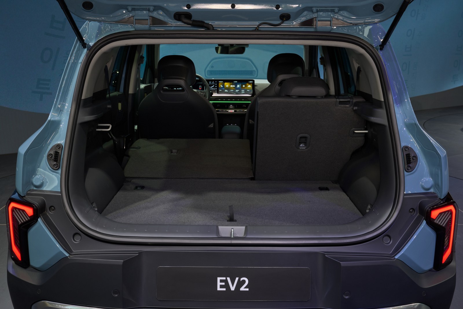 sistema audio Harman/Kardon a otto altoparlanti. KIA EV2 offre spazio anche per i passeggeri posteriori che avranno una abitabilità per le gambe pari a 885 mm e di 973 mm per la testa. Particolarità, oltre alla versione a 5 posti, questa nuova piccola elettrica coreana sarà disponibile in quella a 4 posti, con le due sedute separate che possono scorrere in avanti per dare più spazio ai passeggeri o ai bagagli.
