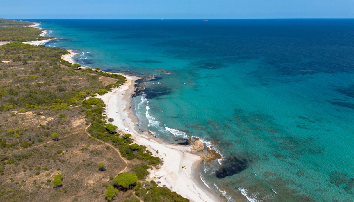 Il paesaggio cambia con discrezione: dalle pinete ombrose ai sentieri sabbiosi che si aprono su calette turchesi, fino ad arrivare allo stagno di Sa Curcurica, una zona umida di rara importanza ecologica.