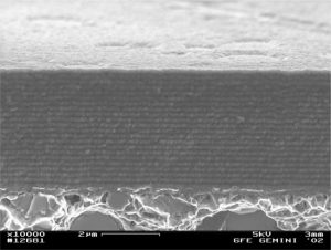 Sempre mediante processo di magnetron sputtering reattivo in atmosfera di Ar+N₂, sono stati prodotti film sottili di SiNₓ, interessanti per le loro proprietà di stabilità termica, elevata durezza, inerzia chimica e buone caratteristiche dielettriche. La variazione della pressione parziale di azoto durante la deposizione ha consentito di modulare la concentrazione di azoto nei film, influenzando direttamente morfologia, porosità e omogeneità del rivestimento ottenuto.