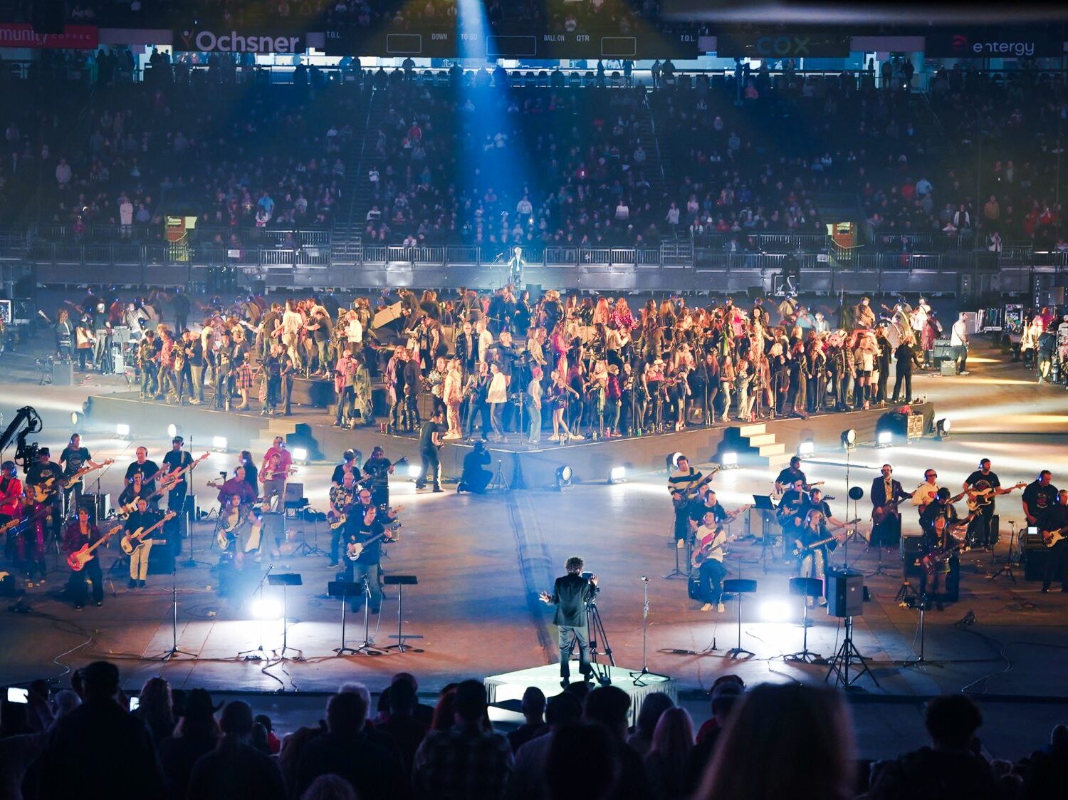 Sabato 31 gennaio Rockin’1000 si è esibita per la prima volta negli Stati Uniti con un concerto al Caesars Superdome di New Orleans. Mille musicisti sullo stesso palco, provenienti da 26 paesi e 48 stati, hanno suonato una selezione di grandi classici del rock davanti a un pubblico da stadio, portando oltreoceano un format che negli ultimi dieci anni ha già attraversato gran parte del mondo.