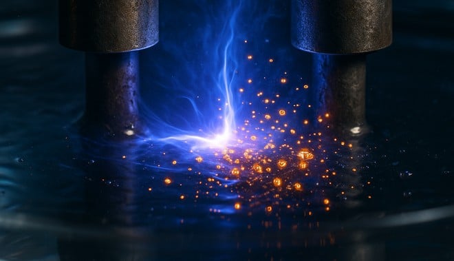 L’idea alla base della tecnica prevede che due barre della stessa lega vengono immerse in acqua insieme a particelle di ossido, come TiO₂, e sottoposte a una scarica al plasma. Gli elettroni e gli ioni generati nel liquido riscaldano porzioni microscopiche della superficie delle barre fino a fonderle. Da queste micro-fusioni si staccano piccole gocce della lega, che vengono immediatamente raffreddate dall’acqua prima che i metalli possano separarsi. Le particelle di ossido presenti nella soluzione catturano le goccioline, impedendo che si uniscano tra loro e fissandole in forma di nanoparticelle stabili.