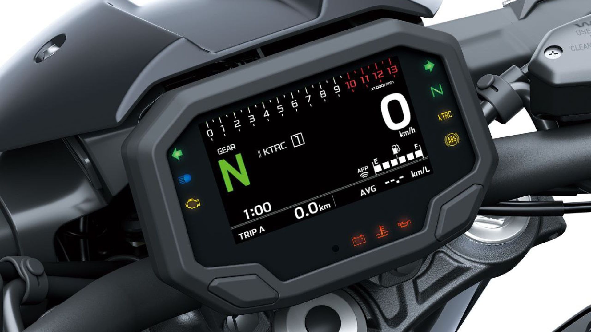 display a colori da 4,3 pollici per la strumentazione che adatta automaticamente la luminosità in base alla luce ambiente. C'è anche la possibilità di poter scegliere tra due diverse grafiche. Lo schermo funge pure da interfaccia con Rideology the App, l’applicazione sviluppata da Kawasaki che permette di connettere la moto allo smartphone e accedere a numerose funzioni aggiuntive.