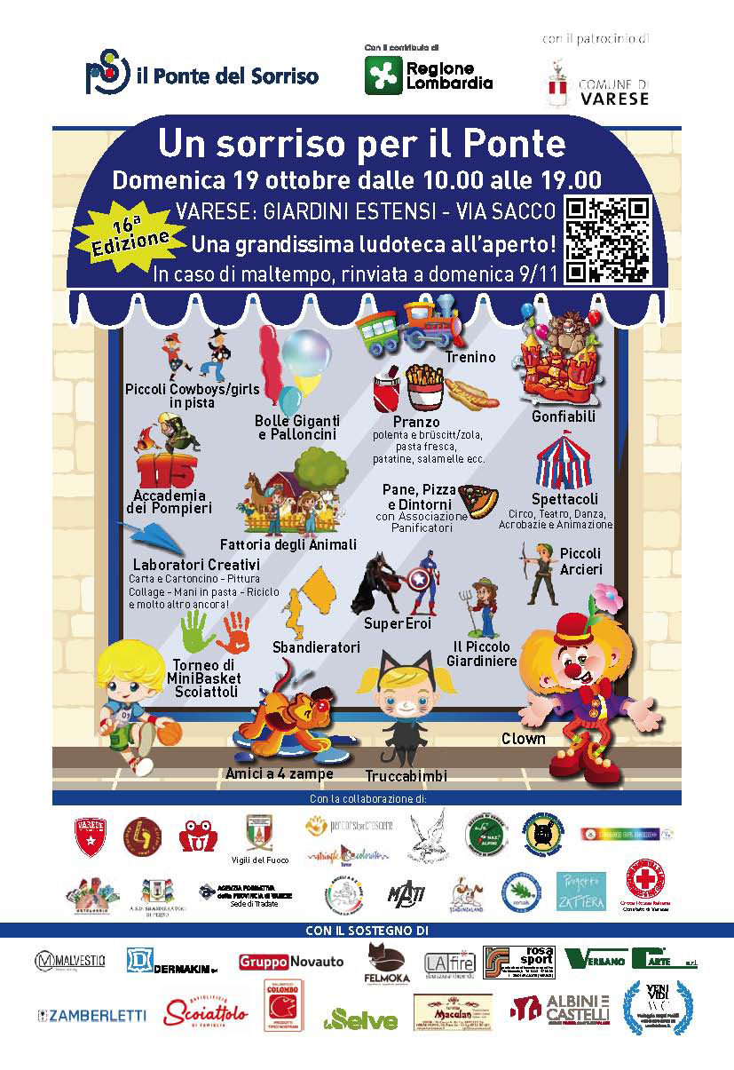 Torna a Varese la grande festa dedicata ai bambini e alle famiglie. Domenica 19 ottobre, dalle 10.00 alle 19.00, i Giardini Estensi e via Sacco si trasformeranno in una vera e propria ludoteca all’aperto, con tantissime attrazioni, laboratori e spettacoli per la 16ª edizione di “Un Sorriso per il Ponte”. Un evento pensato per unire divertimento ed educazione, con attività adatte a bambini di ogni età, in un’atmosfera di gioia, solidarietà e condivisione.