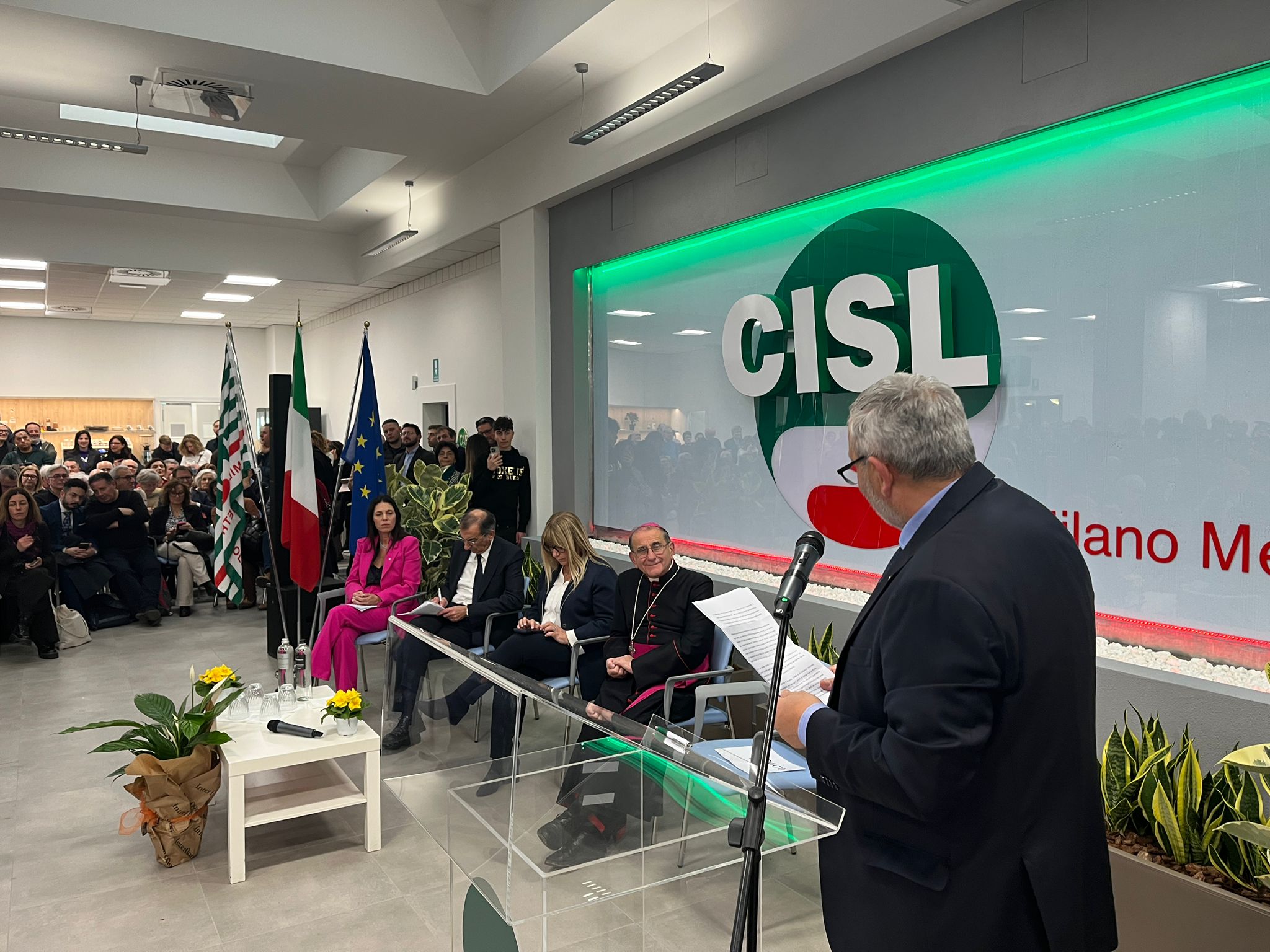 Parole a cui fa eco Fumarola, per cui «Milano è una città centrale non solo nella dimensione lombarda, ma nell’intero Paese. Da sempre rappresenta la capitale economica d’Italia. Avere inaugurato oggi qui la nostra nuova sede, profondamente rinnovata, conferma la scelta vincente compiuta dalla Cisl di vivere in modo più forte e concreto la prossimità di un sindacato al servizio della persona».