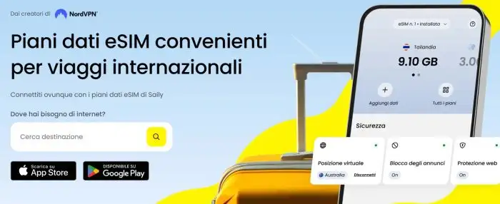 Per viaggiare all’estero è uno strumento digitale perfetto: scarica subito l’app di Saily e approfitta del 5% di sconto sui piani da 10GB in su.